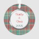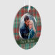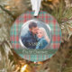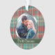 This holiday keepsake ornament features your own photograph within a Christmas red and green plaid pattern frame which has an inside silver lining. A green banner holds your customised text; make it say whatever you'd like! The other side has the same plaid border with additional text on the white interior. An elegant and festive keepsake gift for newlyweds or any couple.