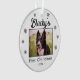 First Christmas Puppy Name Snowflakes Photo Ornament. Personalise the ornament with your dog`s photo, name and year of birth - insert your favourite puppy photo. You can use this custom ornament for any pet. A lovely holiday keepsake for a dog owner.