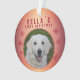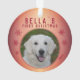 First Christmas Red Snowflake Puppy Photo Ornament. Red snowflakes and gradient background in red and orange colour. Personalise the ornament with your dog`s photo, name and year of birth - insert your favourite puppy photo. You can use this custom ornament for any pet. A great holiday keepsake for a dog owner.