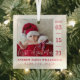 First Christmas Script Baby Birth Stats & Photo Glass Tree Decoration
