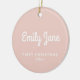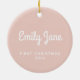 Celebrate a little one’s first holiday season with this charming keepsake ornament, featuring a soft blush background and elegant white script. Perfectly customisable with a name and year, this sweet and minimalist ornament makes a heartfelt addition to your Christmas tree and a treasured memory for years to come. A thoughtful gift for new parents or a delightful way to commemorate your own family's special milestone!