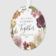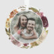 Celebrate your first Christmas as a couple with this elegant, boho floral wreath photo ornament. The wreath has burgundy, pink and warm orange flowers with green foliage accents. Easy to customise with your names and year on the front and your photo on the back.