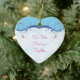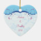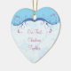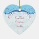 First Christmas together wedding ornament with customisable text on the back. It's easy to personalise this with your own names and the year of your first Christmas together as a couple. Blue and pink abstract floral design.