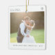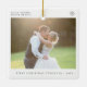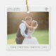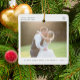Simple minimalist typography First Christmas together married and merry custom couple's photo, names, and year tree ornament.