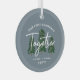 If you are shopping for the perfect keepsake gift for a couple dating, check out this First Christmas Together Rustic Trees Couples Glass Ornament. It is modern designed with three evergreen trees created from a personal drawing. The text is "Our first Christmas Together" in trendy hand lettered script mixed with simple white lettering. Personalised with couple's first names on lower centre. Customised with year and you can change the background colour from dusty blue by using the provided template. CLICK PERSONALIZE TEMPLATE OPTION AND ENTER NAMES AND YEAR.