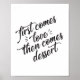 "First Comes Love Then Comes Dessert" sign perfect for wedding shower or wedding dessert table decor.