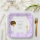 First Communion African American Purple Damask Paper Plate