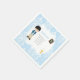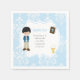 Adorn your food table with these First Communion Black Hair Boy Paper Napkin featuring a blue Damask pattern.