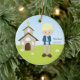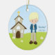 This cute ornament makes a wonderful First Holy Communion gift or keepsake. The design features a little boy with blonde hair wearing a suit and holding blue rosary beads. The background has a church, green grass and blue sky. Graphics: https://www.etsy.com/shop/Prettygrafikdesign