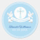 This First Communion envelope seal features a double white frame with blue cross, doves and white banner with text "My First Communion" on a blue background. Easy to personalise with custom options. Use the 'Personalise" button to customise the product, or add text.