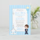 First Communion Blue Stripes Brown Hair Boy Invita Invitation