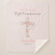 Elegant fleece blanket for your first holy communion with a floral cross on a blush pink background. Personalise with text, name and date. Makes a thoughtful gift for confirmation.