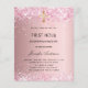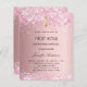 A blush pink gradient background. Decorated with pink faux glitter, confetti and a cross. Personalise and add a name and details. The name is written with a hand lettered style script