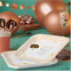 Adorn your food table with these First Communion Brunette Boy Paper Plates featuring a Peach Damask pattern.