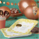 Adorn your food table with these First Communion Brunette Boy Paper Plates featuring a Gold Damask pattern.