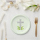 Pearl white cross on leafy greens on mint green paper plates in 7" or 9" size. Perfect design for First Communion, Baptism, Christening, Dedication or any religious special occasion. MATCHING items in our store.