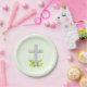 First Communion Cross on Pale Green Paper Plate