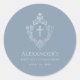 First Communion Dusty Blue Faux Silver Crest Boy Classic Round Sticker