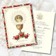 Celebrating the Sacrament of First Holy Communion is a wondrous occasion. This traditional Catholic custom-designed vintage First Holy Communion Invitation shares the beauty of the Holy Eucharist and Jesus, Divine Mercy accented with red roses. All text and fonts can be easily modified.
