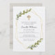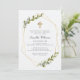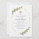 Design is composed of green greenery leaf foliage botanicals with faux gold geometric frames and adorned by a faux gold cross.