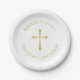 First Communion Gold Cross Monogrammed Name Paper Plate
