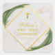 First Communion Greenery Faux Gold Marble Fern Square Sticker