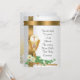 Image and illustration composition of gold chalice, ivy, white roses and gold text for child's First Holy Communion party invitation. Custom design. Customisable.