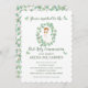 First Communion invitation with eucalyptus motifs in watercolor from the ALEXIA collection with wavy border.