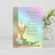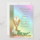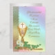 Image and illustration composition of gold chalice, ivy, white roses and gold text for child's First Holy Communion party