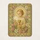 This exquisite holy card features the Christ Child in a moment of profound Eucharistic reverence, lovingly rendered in the style of a traditional sacred image. The Child Jesus, radiant with innocence and divine peace, holds a glowing Host bearing the sacred monogram “IHS” and an ornate golden chalice, symbolising His Real Presence in the Most Blessed Sacrament. His gentle countenance is crowned with a luminous halo, while a soft sacred glow and a richly detailed border of roses and lilies frame the scene with reverence and purity. Ideal for First Holy Communion, Eucharistic Adoration, or devotional display, this card is a tender invitation to draw near to the Heart of Jesus in the Holy Eucharist.