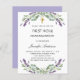 A white background decorated with lavender flowers and eucalyptus greenery. Personalise and a name and details.