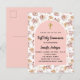 First Communion pampas flowers rose gold pink girl Invitation Postcard