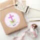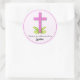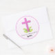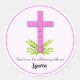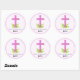Cross in shades of pink on leafy greens, a fun design for First Communion, Baptism, Christening, Dedication party favours stickers and more. MATCHING items in our store.