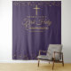First holy communion photo booth backdrop featuring delicate gold dust confetti, you can personalise with your special information in chic gold text on a purple background. Designed by Thisisnotme©