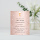 A rose gold faux metallic looking background. Decorated with rose gold, pink faux glitter, sparkels, a chalice and a host. Personalise and add a name and details. The name is written with a hand lettered style script