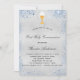 Faux silver looking background decorated with blue faux glitter dust a golden chalice and a host. Personalise and add a name and reception details. Black coloured letters.