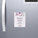 A violet, lavender watercolored background. Decorated with violet and purple watercolored flowers and greenery and a golden cross. Personalise and add your name and reception details.