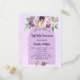 A violet, lavender watercolored background. Decorated with violet and purple watercolored flowers and a golden cross. Personalise and add your name and reception details.
