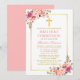 First Communion Watercolor Pink Blush Floral Gold Invitation