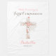 Elegant fleece blanket for your first holy communion with a floral cross on a simple white background. Personalise with text, name and date. Makes a thoughtful gift for confirmation.