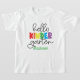 A cute adorable T-shirt for your little girl or boys first day at Kindergarten. Hello Kindergarten is the design and you can add their name at the bottom if you wish.