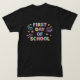 Celebrate the big milestone with this cute 'First Day of School' design. Featuring 3D bubble lettering in soft pastel colors, accented with stars and hearts, it's the perfect outfit for any young student.
