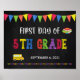 First Day Of School Sign | 5th Grade Poster--Kick off your child's school year with a festive and colourful first day of school chalkboard sign! What a fun and memorable way to remember your child's first day of school. Customise the date for your first day of school and get ready for all those pictures!