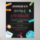First day of school sign featuring a chalkboard style background. Easily change the text on this template to add your child's personal details. Vector art by freepik.