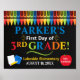 Our sign features a burst of colours, playful patterns, and delightful illustrations that will bring a smile to every child's face. The eye-catching design will make your first day of school photos truly memorable.