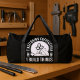 This black duffle bag is perfect for any woodworker or builder whose day starts with coffee! It features a design with coffee beans and a bag of coffee within a circular saw blade, stating "FIRST I DRINK COFFEE THEN I BUILD THINGS." It's an ideal gift for carpenters, DIYers, and anyone fuelled by their morning brew and passion for creation. Edit colour of the bag caps and body in the Design tool to your favored colours.