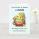 Celebrate your great-great-grandson’s very first Easter with a personalised card just for him! A cute chick hatches from its shell, surrounded by bright spring flowers, set against a soft pastel teal background that enhances the warmth of the season. His name on the front makes this card even more special, creating a one-of-a-kind keepsake for his milestone first Easter. Filled with love and joy, this is a heartfelt way to celebrate his first holiday in a truly personal way!