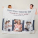 First Fathers Day Grey and Blue 3 Photo Fleece Blanket