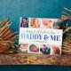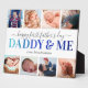 Elegant first fathers day picture plaque featuring the cute saying "daddy & me" in a blue gradient font, 6 photos for you to replace with your own, and the childs name.