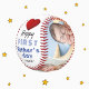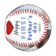 First Father's Day Red Heart 4 Photo Collage Baseball. Make a special baseball ball for the new dad ever with a beautiful red heart. Whether displayed as a treasured keepsake or used for a friendly game of catch, this custom baseball will serve as a constant reminder of the precious moments shared between father and child. Add your favourite 4 photos of the baby into the template and customise the text with your names. Lovely keepsake gift for Father`s day.